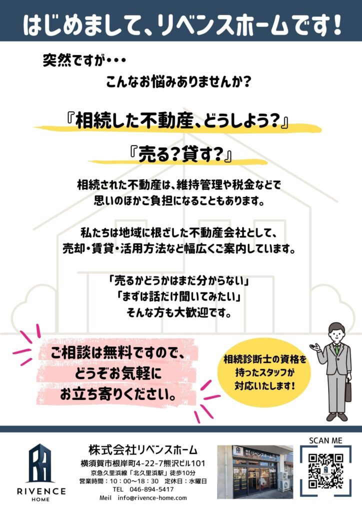 なお、本記事は神奈川県横須賀市を中心に不動産売買・リフォーム・空き家管理を行っている株式会社Rivence Home(リベンス ホーム)が地域の実情を踏まえてお伝えしています。