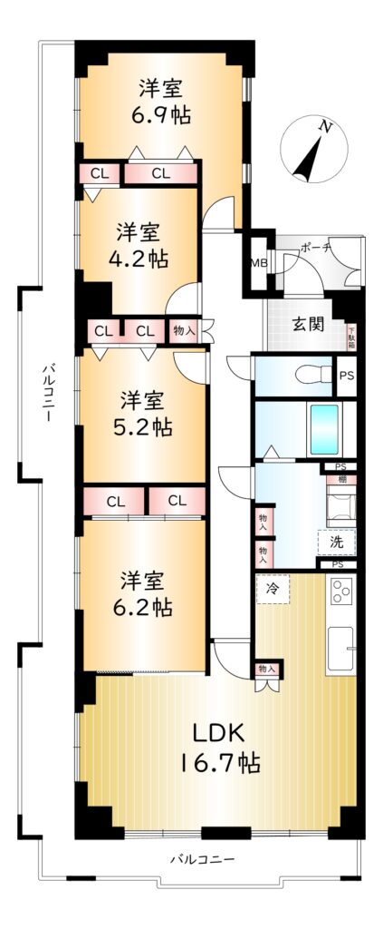 | 専有面積 | 96.72㎡ | バルコニー面積 | 30.84㎡ |