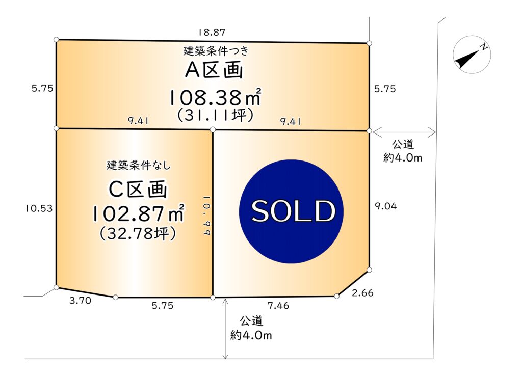 | 価格 | A区画:1,480万円 C区画:1,580万円 | 土地面積 | A区画:108.38㎡ (32.78坪) C区画:102.87㎡ (31.11坪) |