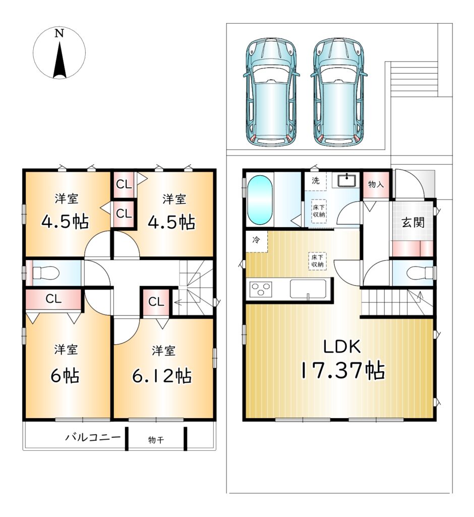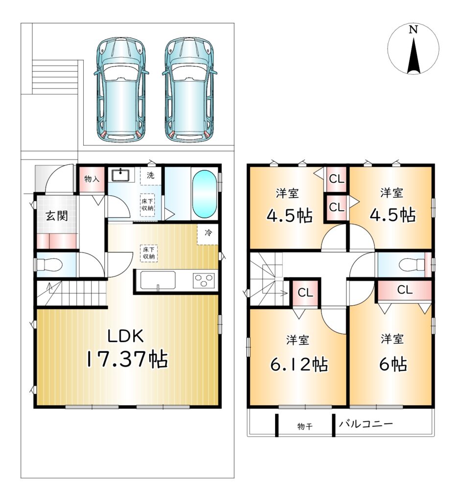 | 土地面積 | A号棟 公簿116.17㎡ B号棟 公簿116.09㎡ | 建物面積 | A号棟 90.26㎡ B号棟 90.26㎡ |